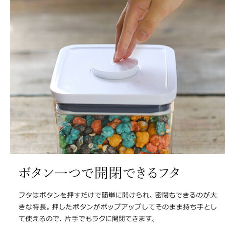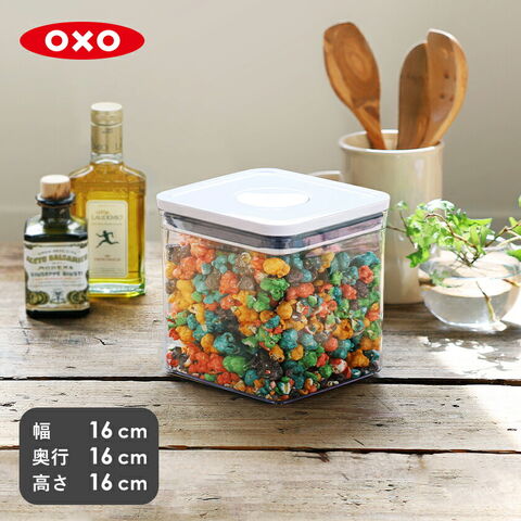 [ オクソー ポップコンテナ2 ビッグスクエア ショート ]密閉 透明容器 OXO フード コンテナ 乾物ストッカー おしゃれ 保存容器 保存 容器 お米入れ スタッキング 角型 お菓子 米びつ ドッグフード キャットフード ペットフード プロテイン ドライフルーツ