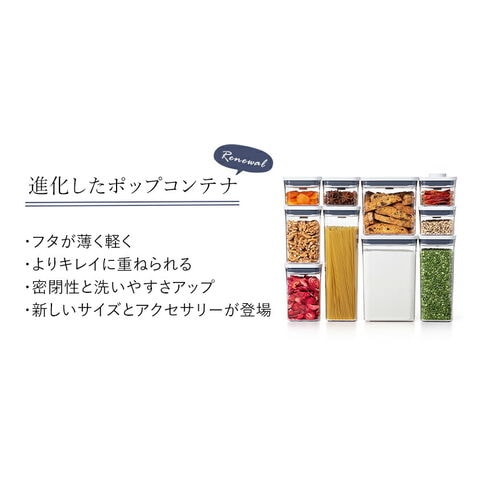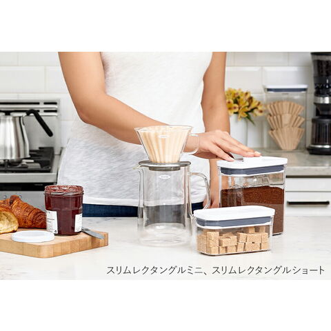 [ OXO / オクソー ポップコンテナ2 スリムレクタングル ショート ]OXO ポップコンテナ2 密閉 コンテナ 乾物ストッカー おしゃれ 食品保存容器 ストック スタッキング キッチン収納 ドッグフード ストッカー 角型 ワンプッシュ 小麦粉 お菓子 プロテイン