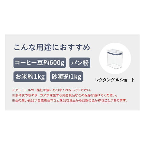 [ OXO / オクソー ポップコンテナ2 レクタングル ショート ]OXO ポップコンテナ2 密閉 透明 コンテナ 乾物ストッカー おしゃれ 食品保存容器 ストック スタッキング キッチン収納 角型 ワンプッシュ コーヒー豆 砂糖入れ お菓子 ペットフード プロテイン