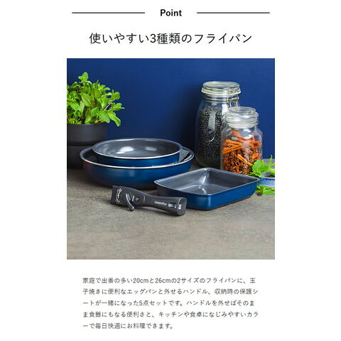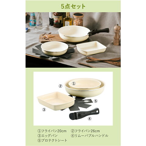 [ グリーンパン クリックシェフ 5点セット ]GREENPAN 5点 セット フライパン 20cm 26cm 卵焼き器 着脱式ハンドル セラミックコーティング 食洗機対応 オーブン IH ノンスティック 重ねて収納 取っ手が外せる