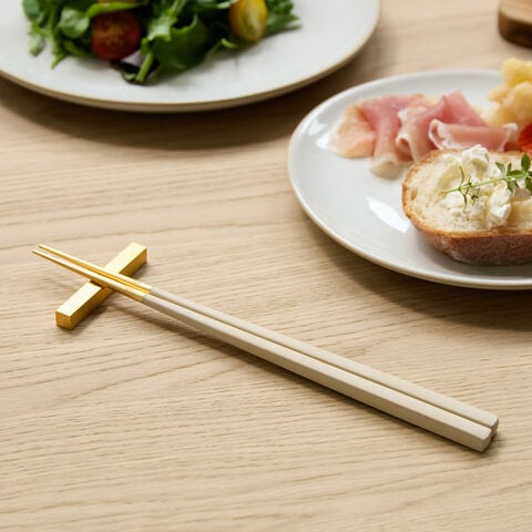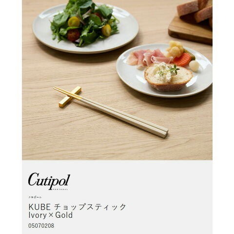 [ Cutipol KUBE チョップスティック(箸置付) アイボリー×ゴールド ]クチポール キューブ 箸 箸置き セット 1膳 正規店 カトラリー 食器 おしゃれ お箸 男性 女性 大人 おはし 角箸 洋食器 ステンレス お祝い 結婚祝い