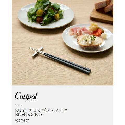 [ Cutipol KUBE チョップスティック(箸置付) ブラック×シルバー ]クチポール キューブ 箸 箸置き セット 1膳 正規店 カトラリー 食器 おしゃれ お箸 男性 女性 大人 おはし 角箸 洋食器 ステンレス お祝い 結婚祝い