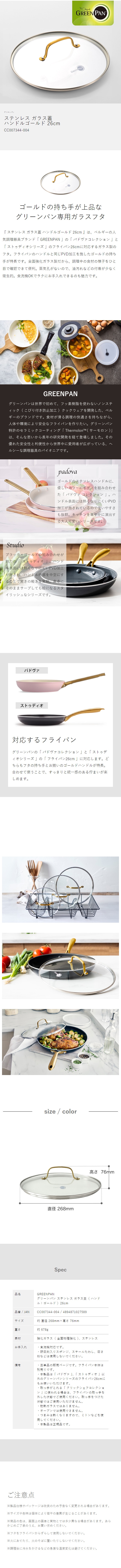 [ グリーンパン ステンレス ガラス蓋(ハンドル ゴールド)26cm ]GREENPAN ゴールド ガラス蓋 26cm パドヴァ ストゥディオ 対応 鍋蓋 フライパン ふた 食洗機 鍋ふた なべふた フタ ガラス製 強化ガラス 26センチ