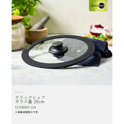 [ グリーンパン クリックシェフ ガラス蓋 26cm ]クリックシェフ専用 単品 ガラス蓋 フライパン蓋 26cm 中が見える ガラス製 部品 スペア 買い替え 強化ガラス 調理器具 ふた 26センチ GREENPAN