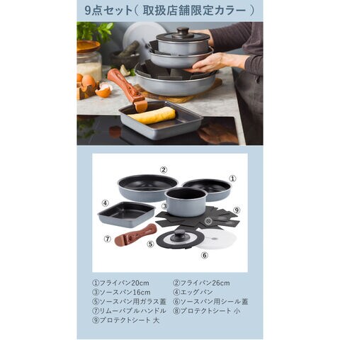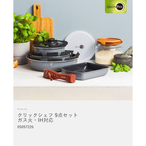 [ グリーンパン クリックシェフ 9点セット チャコールグレー ]店舗限定 フライパン 20cm 26cm 着脱式ハンドル 卵焼き器 セラミックコーティング 食洗機対応 オーブン IH ノンスティック ダイヤモンド 重ねて収納 取っ手が外せる フライパン GREENPAN