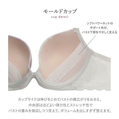 箇所によって伸び・厚み・柔らかさが違うモールドカップで、すっきりときれいなバストラインに整えます。
