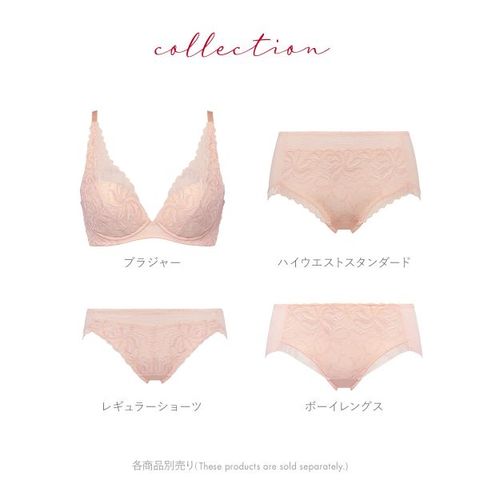保形性に優れたカップ素材、"エンジェルクッションライト(R)"を使用。ソフトで軽い着けごこちでありながら、きれいなバストラインをメイクします。ファイバーフィルパッドで、ボリュームもアップ。フロント中心部分のワイヤーを薄くフラットにし外側に反らせた"NEWエンジェルワイヤー(R)"仕様なので、肌にくいこみにくいです。