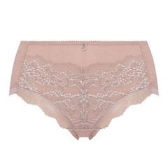 身生地には伸縮性のあるソフトな風合いのツーウェイ素材を使用しています。前脚口にはメインのストレッチレースを、後ろ脚口には細幅のストレッチレースをあしらった、はきやすいショーツです。
