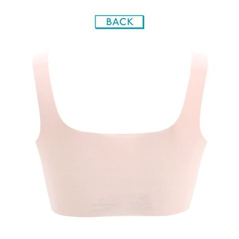 身生地は吸水速乾機能があります。接着技術を使用した無縫製のハーフトップブラです。生地端が切りっぱなしなので、アウターにひびきにくくなっています。