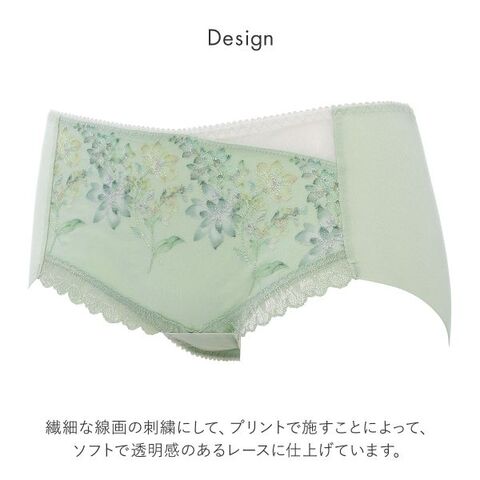 前脚口はレース仕様で、くいこみにくくなっています。ローライズのボトムにも対応できるヒップハンガータイプです。