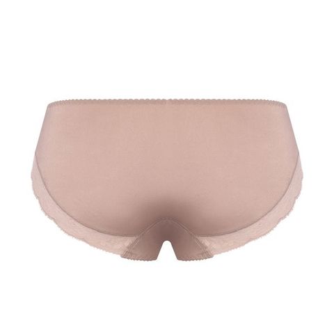 身生地には伸縮性のあるソフトな風合いのツーウェイ素材を使用しています。前後脚口に編みレースをあしらった、履きやすいショーツです。裏打ちには綿100%の素材を使用しています。