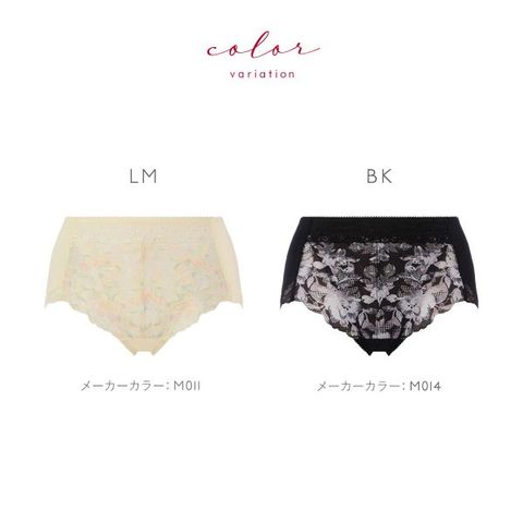 | 仕 様 | ・伸縮性:バックのみ縦横にあり ・透感:レース部にあり ・クロッチ付き ・はきこみ深め ※カラーによりサイズ展開が異なります。 ※裁断の関係上、柄の出方が画像と多少異なる場合があります。 |