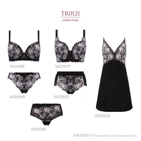 月光の下で花開くクチナシの花や可愛らしく丸い蕾をストレッチレースにプリントし、古代ギリシャをイメージした刺しゅうレースを組み合わせたデザイン。
