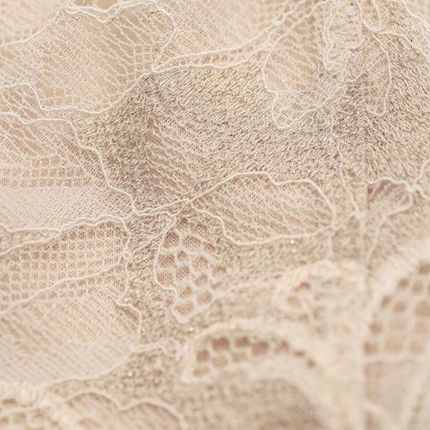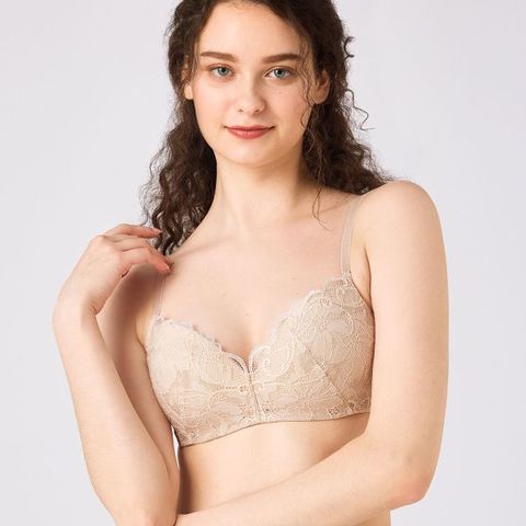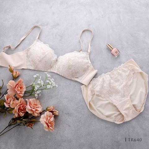 クレマチスの花をモチーフにした編みレースをバスト部分に使用した、ノンワイヤーだけどきれいなバストシルエットに見えるデザイン。