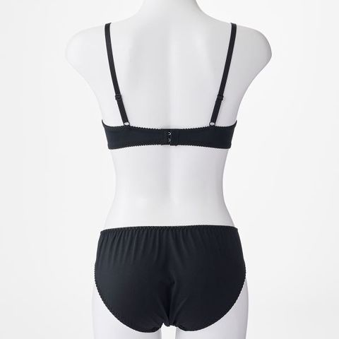 ブラジャーは取り外し可能なレモンパッド入りで、バストをふっくらボリュームアップ。カップ脇は伸び止めの裏打ちとサイドボーン入りで、着装時の安定感をアップ。バックは縦横に伸縮性がある肌触りなめらかな素材を使用しているので、からだにぴったりとフィットします。