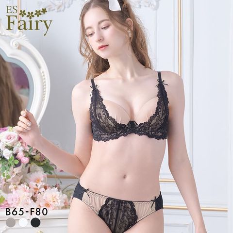 イーエスフェアリー ロマンティックレース ブラセット BCDEF65-80 大きいサイズ 盛り ブラジャー ショーツ セット ES Fairy