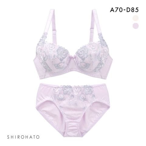 カップ脇リフトで美胸を叶える、脇流れホールド体験ブラジャー&ショーツセットです。フラワー刺繍を儚げな淡色であしらった上品なデザイン。