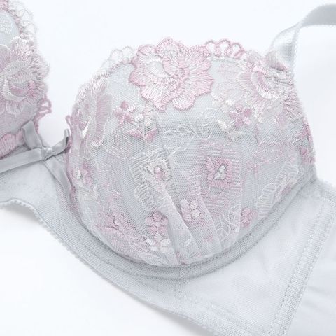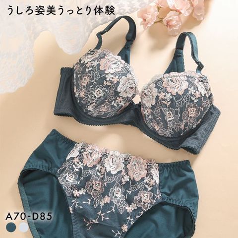 すっきりなめらかで若々しい後ろ姿を叶える、うしろ姿美うっとり体験ブラジャー&ショーツセットです。グラデーションの美しいエレガントな花柄刺繍をあしらった優美なデザイン。