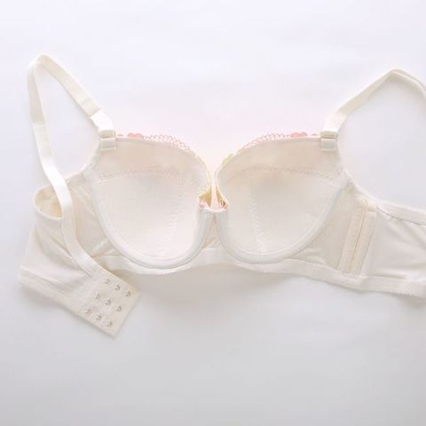 | 仕 様 | 【ブラ】 ・脇高設計 ・3/4カップ ・ホックの数:3段3列 ・パッド、パッドポケットなし ・肩紐取外し:不可 ・ワイヤー入り ・サイドボーン:あり(左右2本ずつ合計4本) 【ショーツ】 ・伸縮性:バックのみ縦横にあり ・クロッチ:付き ・透感:なし |