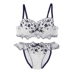 ふんわり柔らかなフラワー刺繍をスカラップに引きつめた、ロマンティックムード溢れるブラジャー。