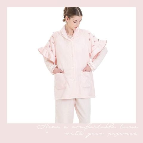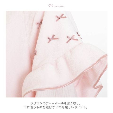 パイピングをあしらったフリルが可愛いスリーブデザインで、肩にはミニリボンが散りばめられています。