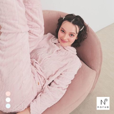 表面は、ケーブル編みが浮き上がるエンボス加工で表情豊かに。裏面はフラットな起毛感で、肌当たりの優しく仕上げています。