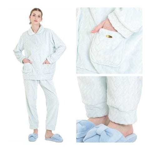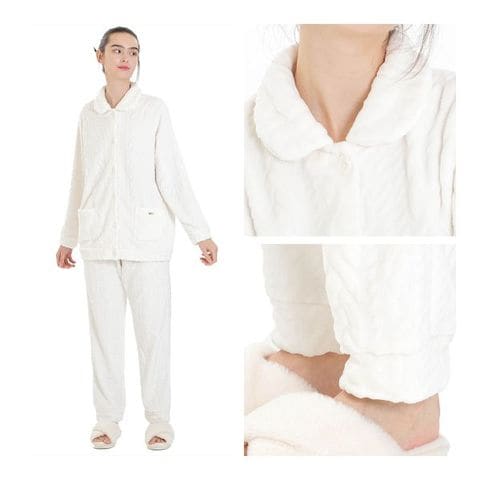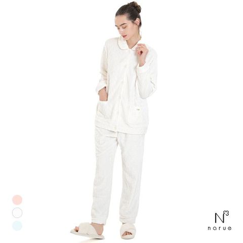 軽さと光沢感が魅力のソフティースノー素材で仕立てたパジャマ。さらさらとしたパウダリーな肌触りで、暖かくからだを包み込みます。