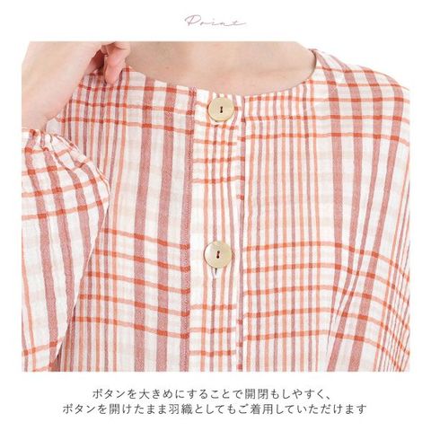 ボタンを大きめにすることで開閉もしやすく、ボタンを開けたまま羽織としてもご着用していただけます。