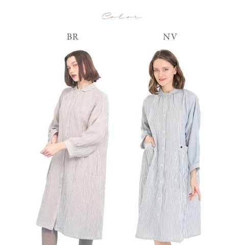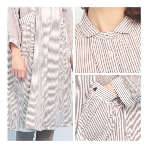 太さの異なる2つのストライプを組み合わせた、シンプルな中にも遊び心のあるデザインのワンピース。ストライプ同士の色の重なりや視覚的なリズム感が、奥行きのある表情を生み出します。