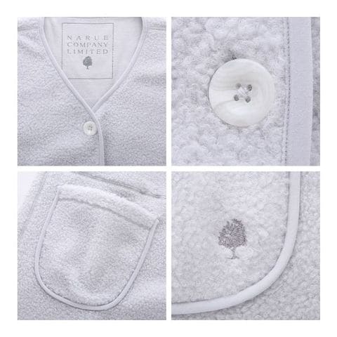 裏面はなめらかな表面感のフリースなので、ルームウェアの上から羽織る際にもすべりがいいのもポイントです。