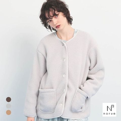 ナルエーのロングセラー商品「フリースボア」で培ったボンディング技術を使用した「プードルフリース」を使用したカーディガン。