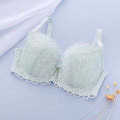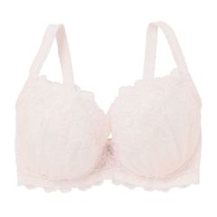 ワントーンでまとめた刺繍レースにラインストーンを散りばめ、華やかさをプラスしたブラジャー。ステッチに強弱をつけることで、小花が浮き出るようなデザインに。