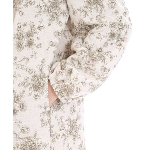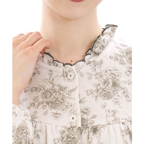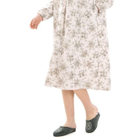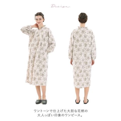 ワントーンで仕上げた大胆な花柄を、繊細なタッチと落ち着きのあるカラーリングで表現した、大人っぽい印象のワンピース。