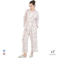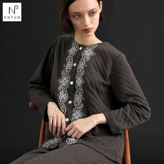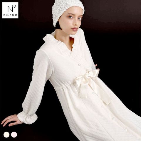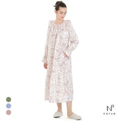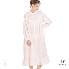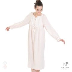 【送料無料】 ナルエー パジャマ 裏綿接結(綿入り)ブドォワールローブ ワンピース ガウン ルームウェア 長袖 moontan by Narue Luxe