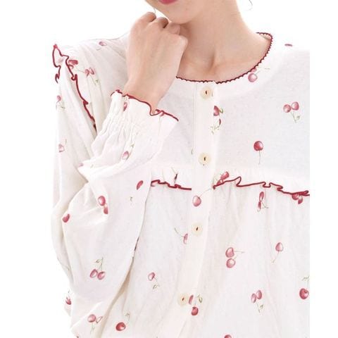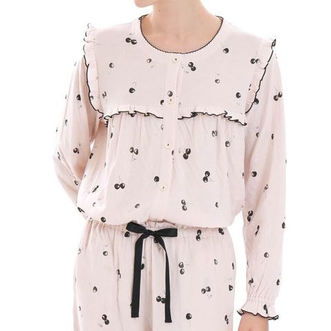 幼さを感じさせないように大人っぽさにこだわって描いたチェリー柄がポイントのパジャマ。
