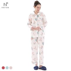 ナルエー パジャマ 裏綿接結(綿入り)テディーベアシャツパジャマ セットアップ 上下セット ルームウェア 長袖 Narue