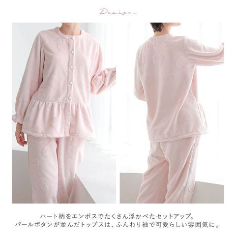 251125 セットアップ ルームウエア 部屋着 長袖 前あき 前開き 長ズボン ロングパンツ もこもこパジャマ モコモコ ふわふわ もふもふ 暖かい 防寒 温かい あたたかい あったかい ぬくぬくハート 女性用 ギフト用 プレゼント用 クリスマス