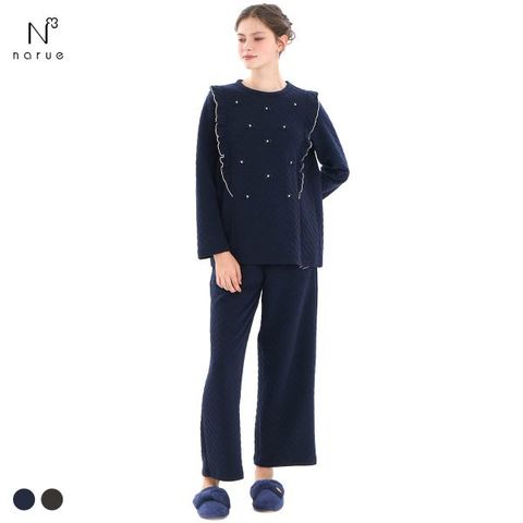 【送料無料】 ナルエー パジャマ 裏綿接結(綿入り)ハートジャガードフリルパジャマ セットアップ 上下セット ルームウェア 長袖 Narue