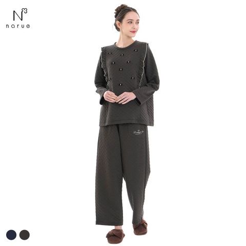 【送料無料】 ナルエー パジャマ 裏綿接結(綿入り)ハートジャガードフリルパジャマ セットアップ 上下セット ルームウェア 長袖 Narue