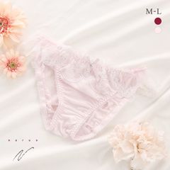 ローズのアップリケレースをのせた、ふんわりフェミニンなデザインのショーツ。ほのかに煌めくラメ糸がさり気なくも華やかさをプラスしています。