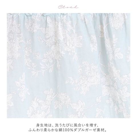 身生地は、洗うたびに風合いを増す、ふんわり柔らかな綿100%ダブルガーゼ素材。繊細な50番手の糸で織り上げているので、柔らかく滑らかな肌触りで、軽やかな着心地です。しなやかな表面感で洗った後のシワも少ないのも嬉しいポイント。