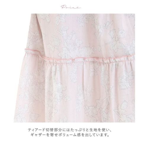 ティアード切替部分にはたっぷりと生地を使い、ギャザーを寄せボリューム感を出しています。