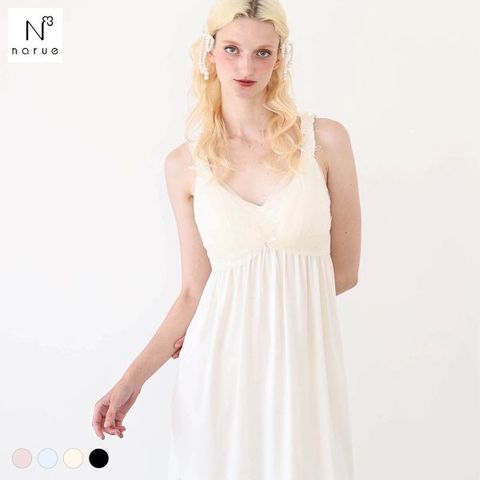 滑らかな肌触りのT/R天竺に、透け感のある軽やかなチュールを組み合わせ、甘く儚げな女の子をイメージしたカップインナイトドレス。