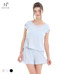 滑らかな肌触りのT/R天竺に、透け感のある軽やかなチュールを組み合わせ、甘く儚げな女の子をイメージしたカップインナイトドレス。