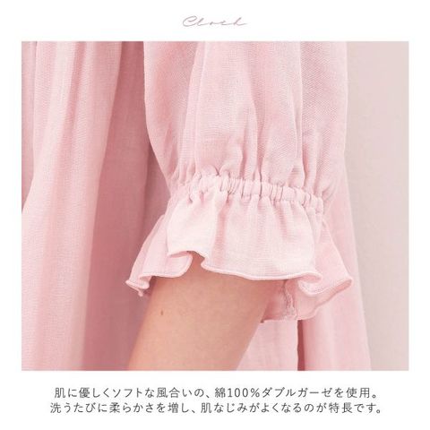 身生地には、肌に優しくソフトな風合いの、綿100%ダブルガーゼを使用。洗うたびに柔らかさを増し、肌なじみがよくなるのが特長です。