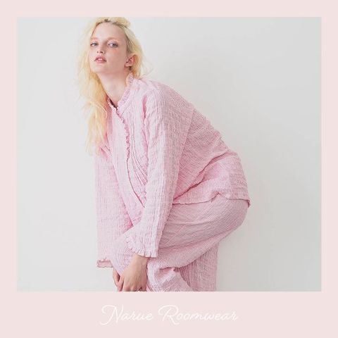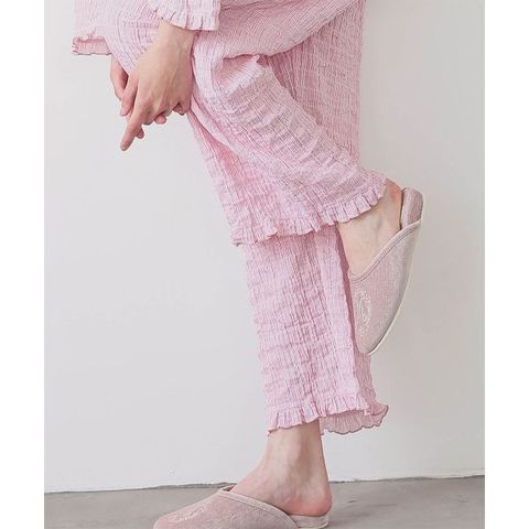 小ぶりなフリルをあしらった上品な印象のセットアップ。