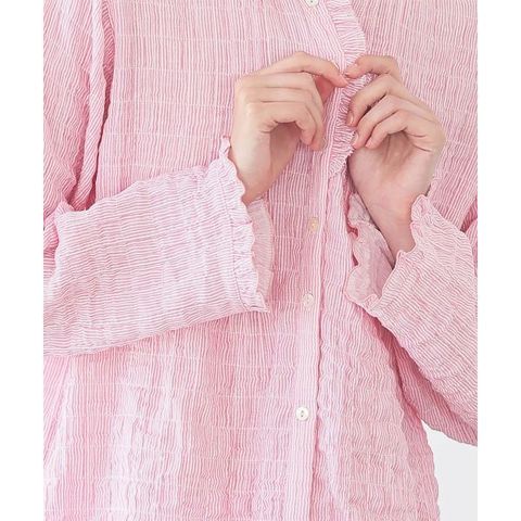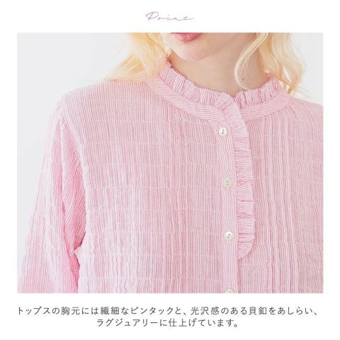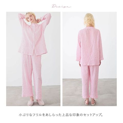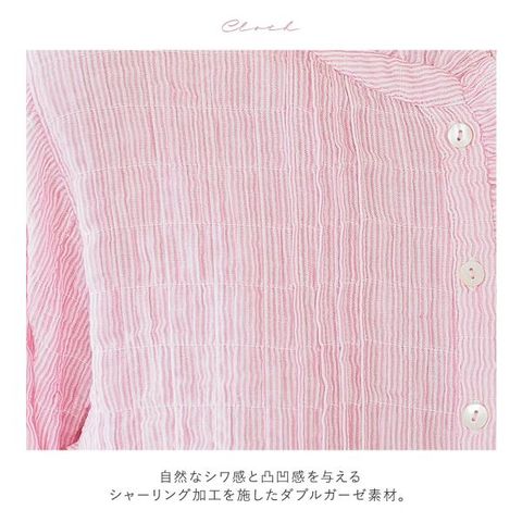 身生地は、自然なシワ感と凸凹感を与えるシャーリング加工を施したダブルガーゼ素材。
