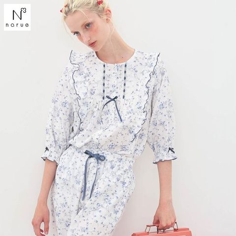 【送料無料】 ナルエー パジャマ 40/ダブルガーゼプティフレーズフリル7分袖パジャマ セットアップ 上下セット ルームウェア 7分丈 綿100% Narue