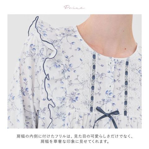 肩幅の内側に付けたフリルは、見た目の可愛らしさだけでなく、肩幅を華奢な印象に見せてくれます。