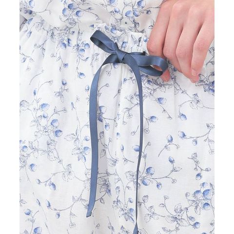トップスは、胸元にあしらったレースとサテンリボンでアクセントをプラスしたデザイン。